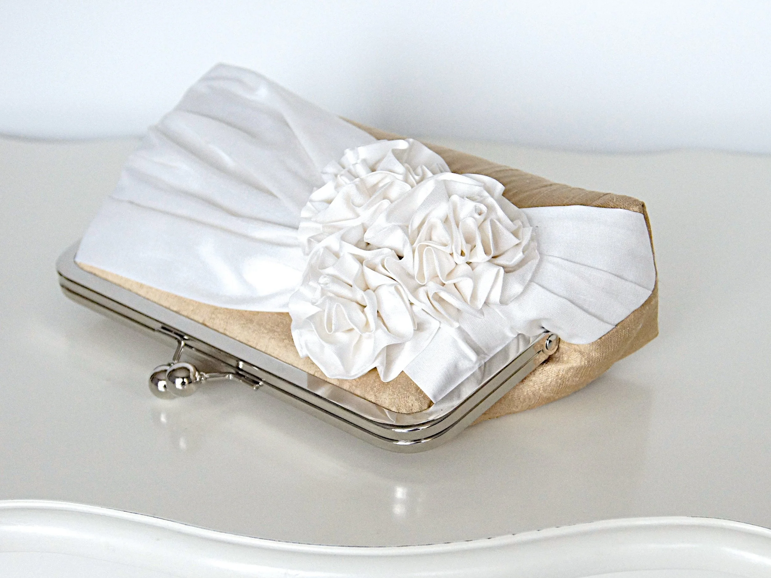 I use pure dupioni silk for this beautiful roses clutch. That silk fabric has a crisp texture and a beautiful sheen. Dupioni silk has an irregular weave with tiny nubs showing. It is lightweight silk with a subtle sheen and a slight rustle. One of the oldest luxury fabrics, popular for wedding gowns.